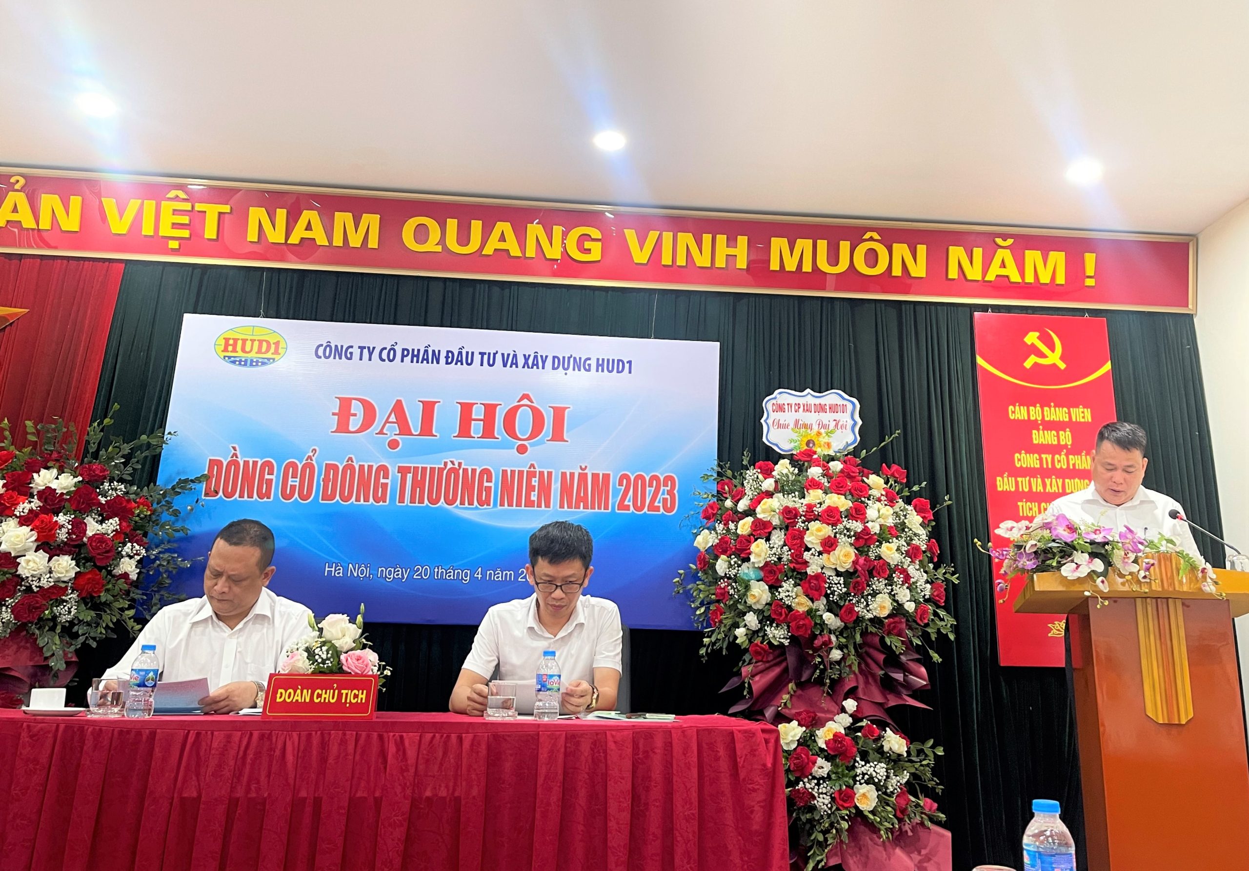 Đại hội đồng cổ đông thường niên 2023 Công ty cổ phần Đầu tư và xây dựng HUD1 được tiến hành hồi 08 giờ 30 phút  ngày 20 tháng 4 năm 2023 tại Trụ sở Công ty, số 168 đường Giải Phóng, phường Phương Liệt, quận Thanh Xuân, thành phố Hà Nội với các nội dung sau:
