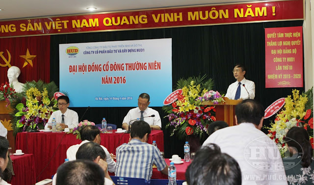 Thực hiện Luật Doanh nghiệp năm 2014 và Điều lệ tổ chức và hoạt động của Công ty Cổ phần Đầu tư và Xây dựng HUD1. Đại hội đồng cổ đông Công ty cổ phần Đầu tư và xây dựng HUD1 được tiến hành hồi 08 giờ 30 phút ngày 14 tháng 4 năm 2016 tại Trụ sở Công ty số 168 đường Giải Phóng, Phường Phương Liệt, Quận Thanh Xuân, Thành phố Hà Nội.