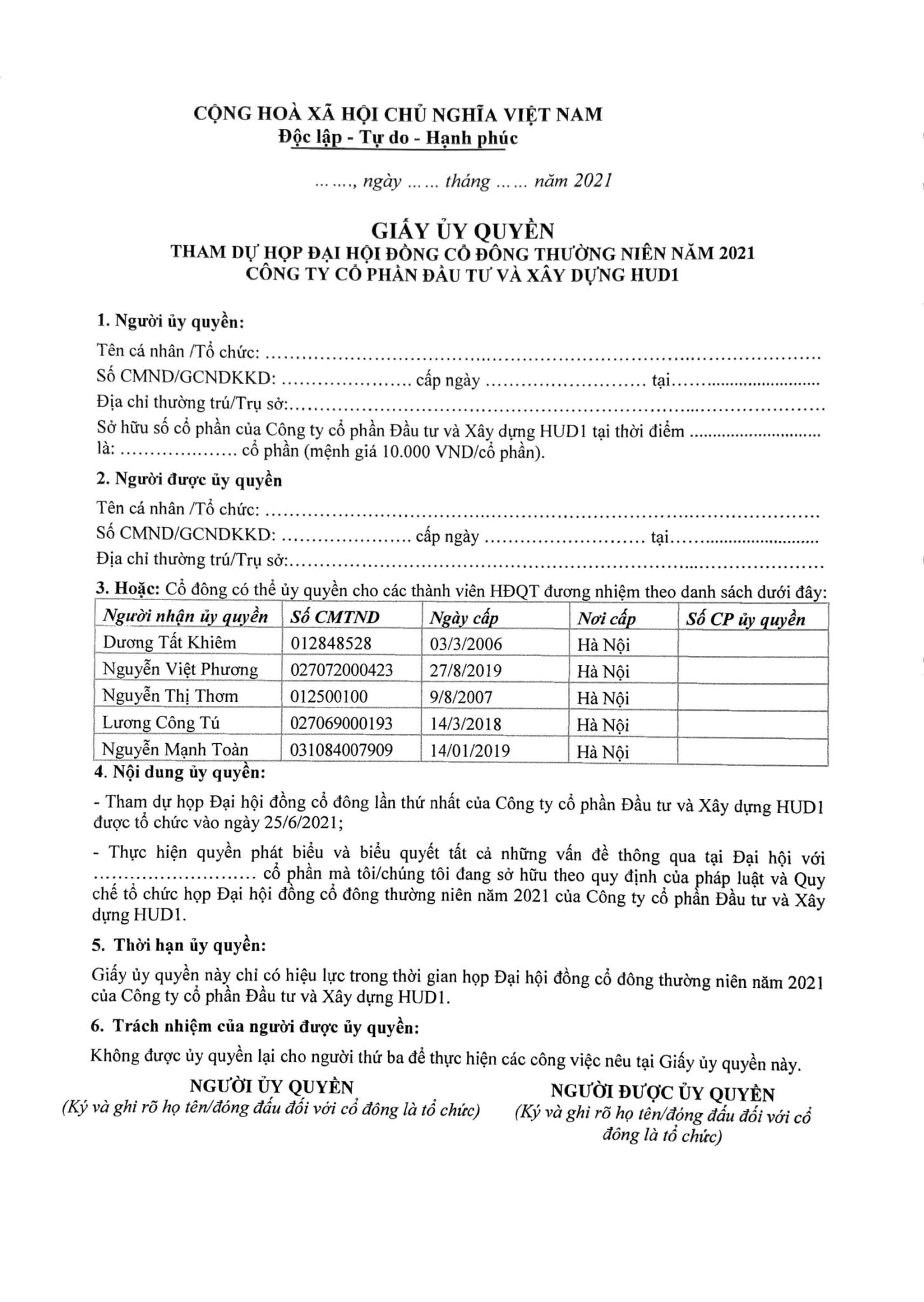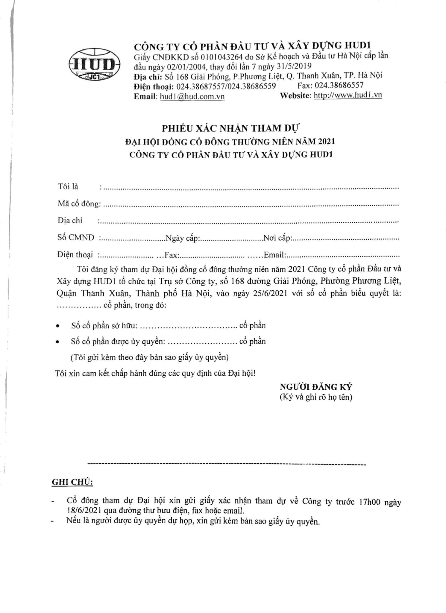 Thư mời họp ĐHĐCĐ thường niên năm 2021