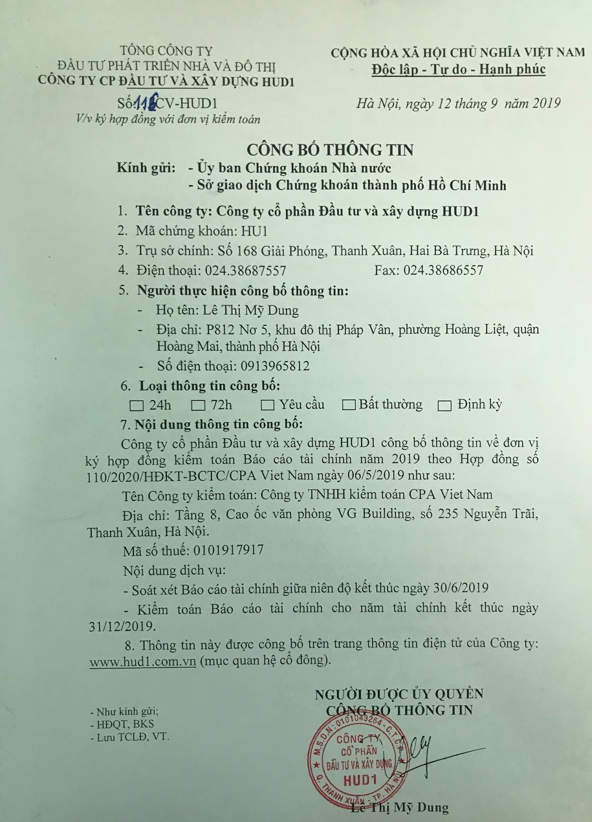 V/v ký hợp đồng với đơn vị kiểm toán